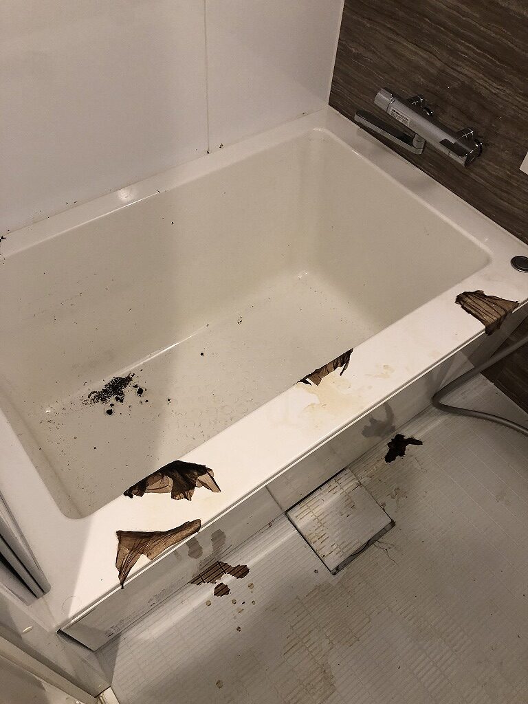 浴室の排水口内に血液や体液が流れ込んでいる事が多く、そこから異臭を放っている事があります。特に水場ですと乾燥せずに体液がそのまま残っています。腐敗した体液からは害虫や強い腐敗臭を放ちます。