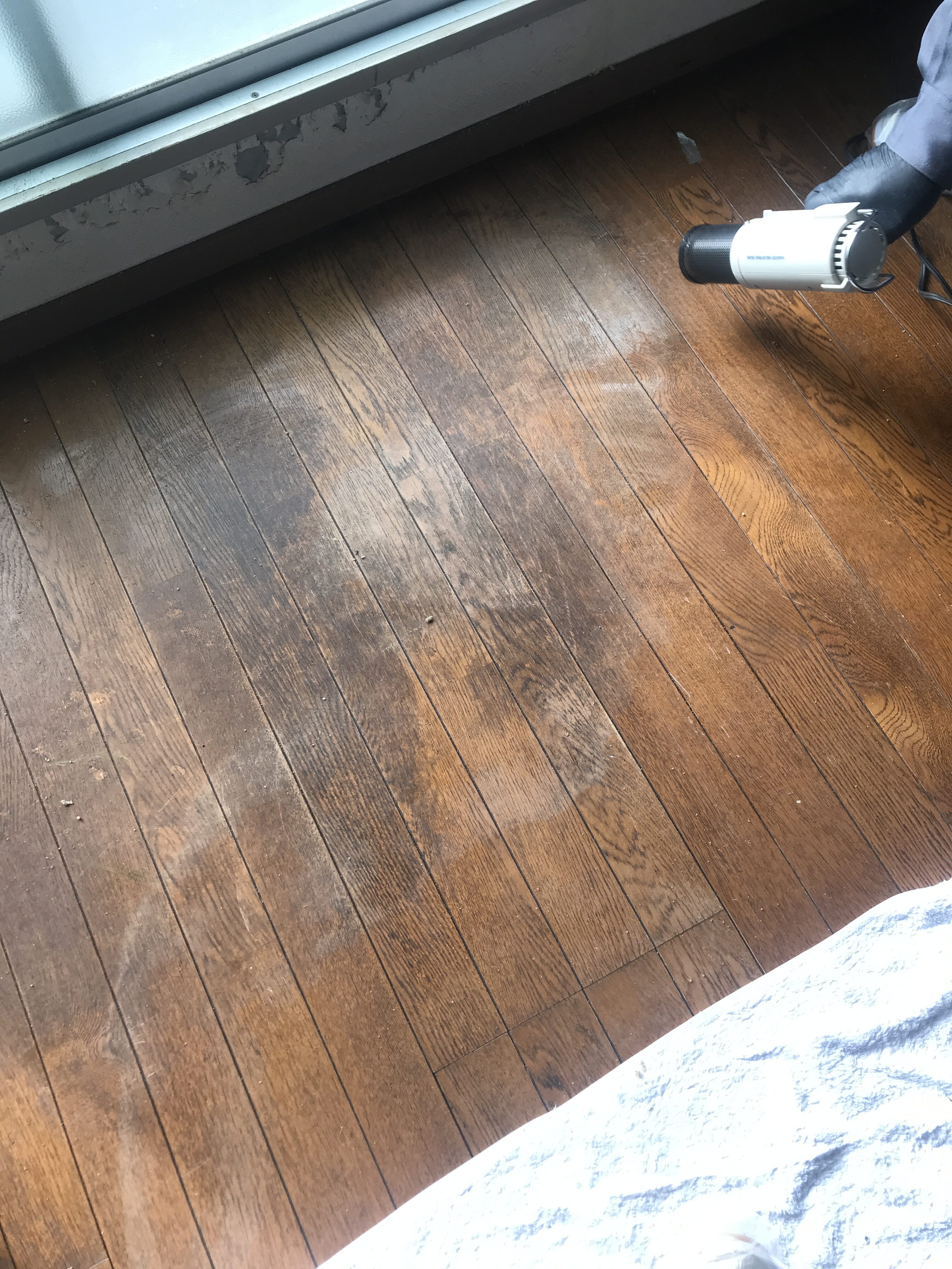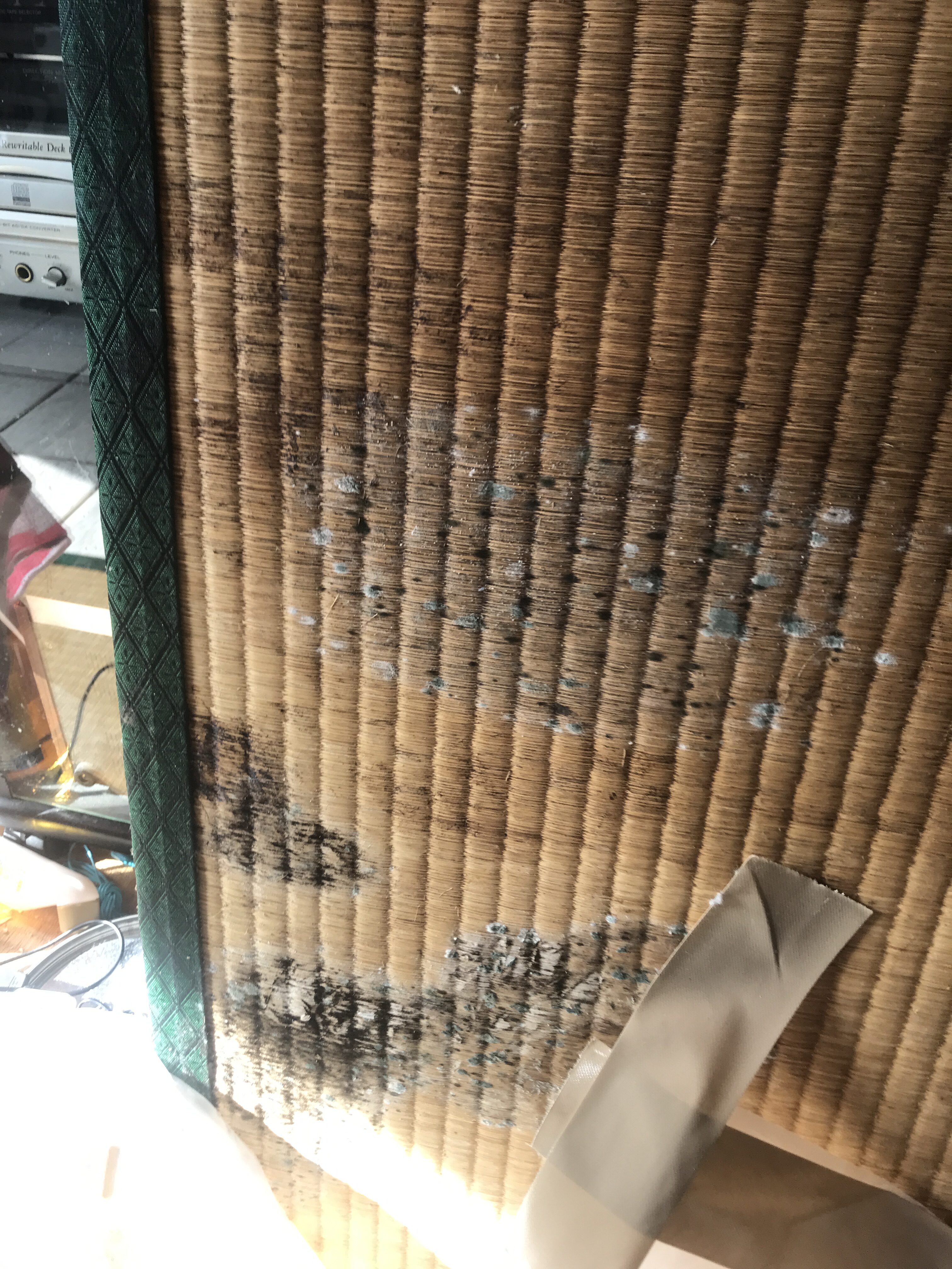 体液の痕跡が残っておりましたので時間をかけて染み抜きを行い、光触媒施工で完了しました。