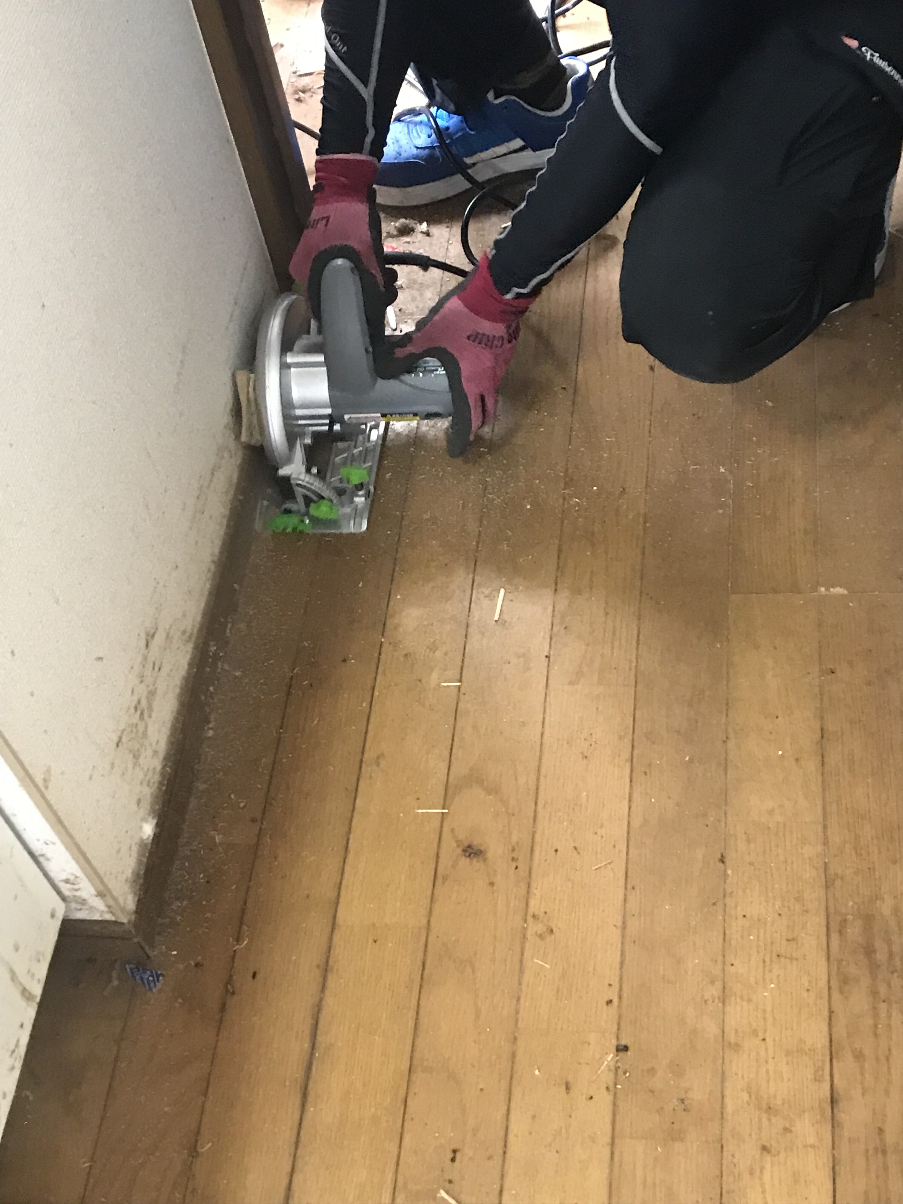 特に床まで血液や体液が浸透していた場合、クッションフロアやフローリング材などを剥がしどこまで体液が浸透しているかを確認する必要が有ります。