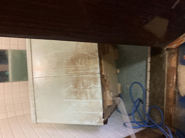 浴室の場合、流れ出した体液や血液が排水口や浴槽の底(裏面)まで浸透することが多いです。そのため浴槽を取り外し洗浄をする必要があります。目に見えない箇所のため清掃度どんなにしても臭いが無くならないのはこれが原因です。最悪の場合浴槽の交換や浴室のリフォームになることもあります。