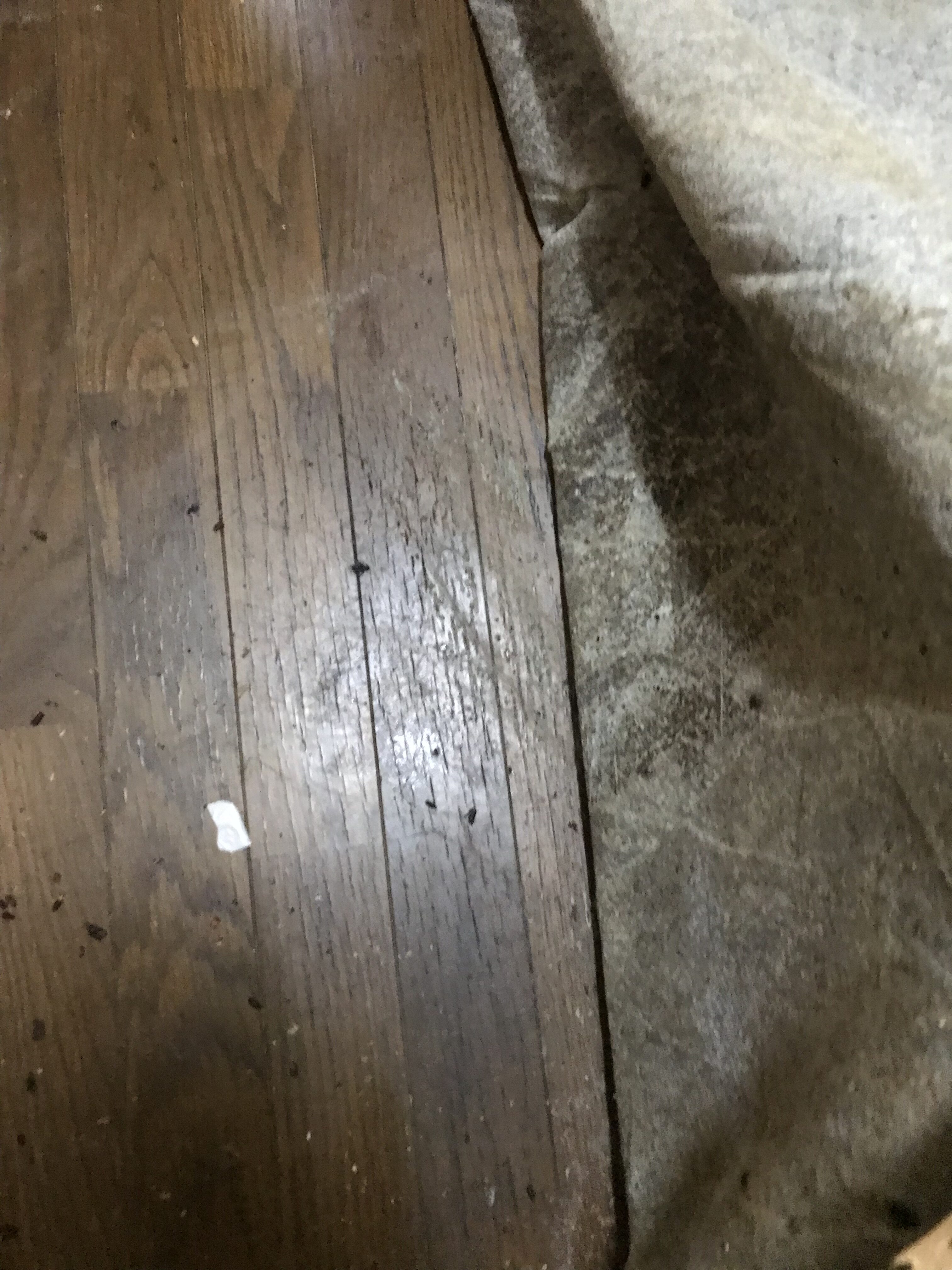 床面には幸い浸透は見られませんでしたので、消毒後に汚染された家財の撤去を行いました。