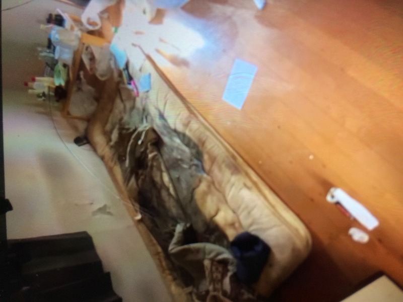 居間とキッチンの間で亡くなられており、大量の頭髪も残されている状態でした。