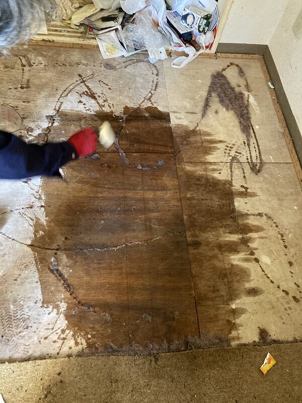 発見までの時間が長いほど、ご遺体は腐敗し体液が身体から流れ出し、床・畳・場合によっては階下・床下までに達しています。汚染された箇所を特殊な薬剤で徹底的に清掃・殺菌・消臭業を行います。