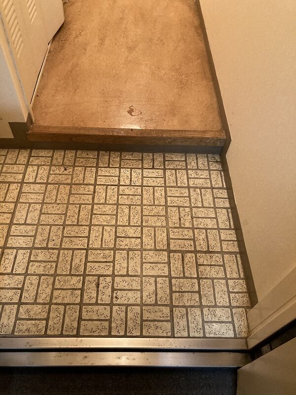 高齢の住人の方が玄関付近で亡くなり、臭いに気が付いた他の住人が管理会社に連絡したそうです。死後数週間とのことでしたが、吐血されたのか血液が広範囲に広がっている状態でした。